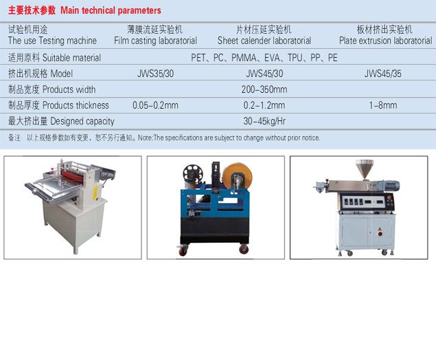 The small testing extrusion lines provided by Changzhou JWELL can meet the demands of extrusion, casting, sheet production, stretching and composite etc. processing test. These lines are used by some Chemical Colleges and Plastics Research Institutes to process and test the performance of the polymer material; It is also for developing new products or making samples amd other application in plastic factory's research department.